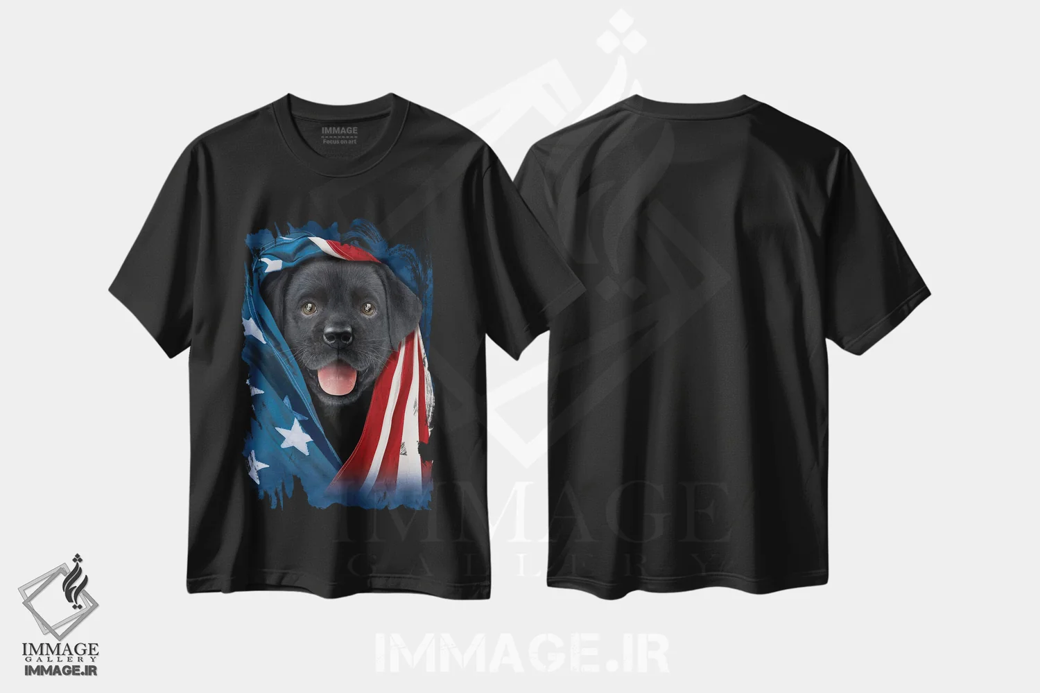 تیشرت مشکی طرح دار توله وطن پرست دو، دکور آمریکایی اثر وینسنت های | فروشگاه ایماژ