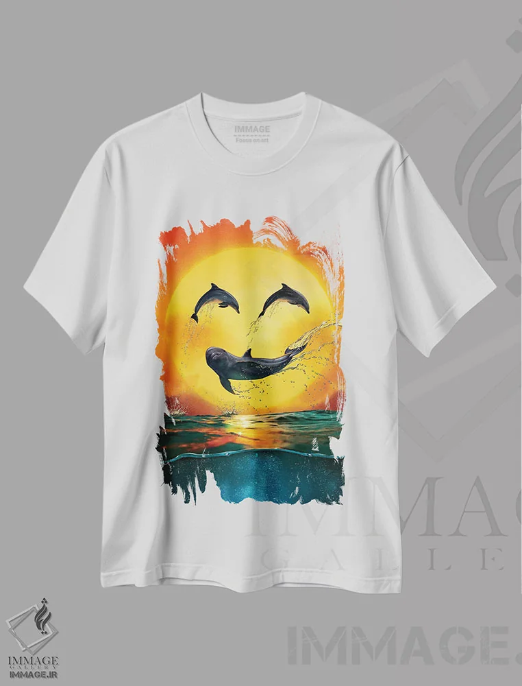 تیشرت طرح دار ایموجی دلفین اثر وینسنت های