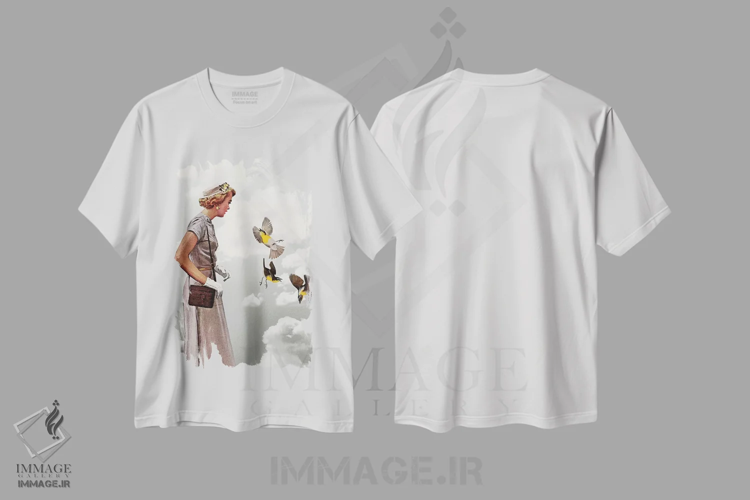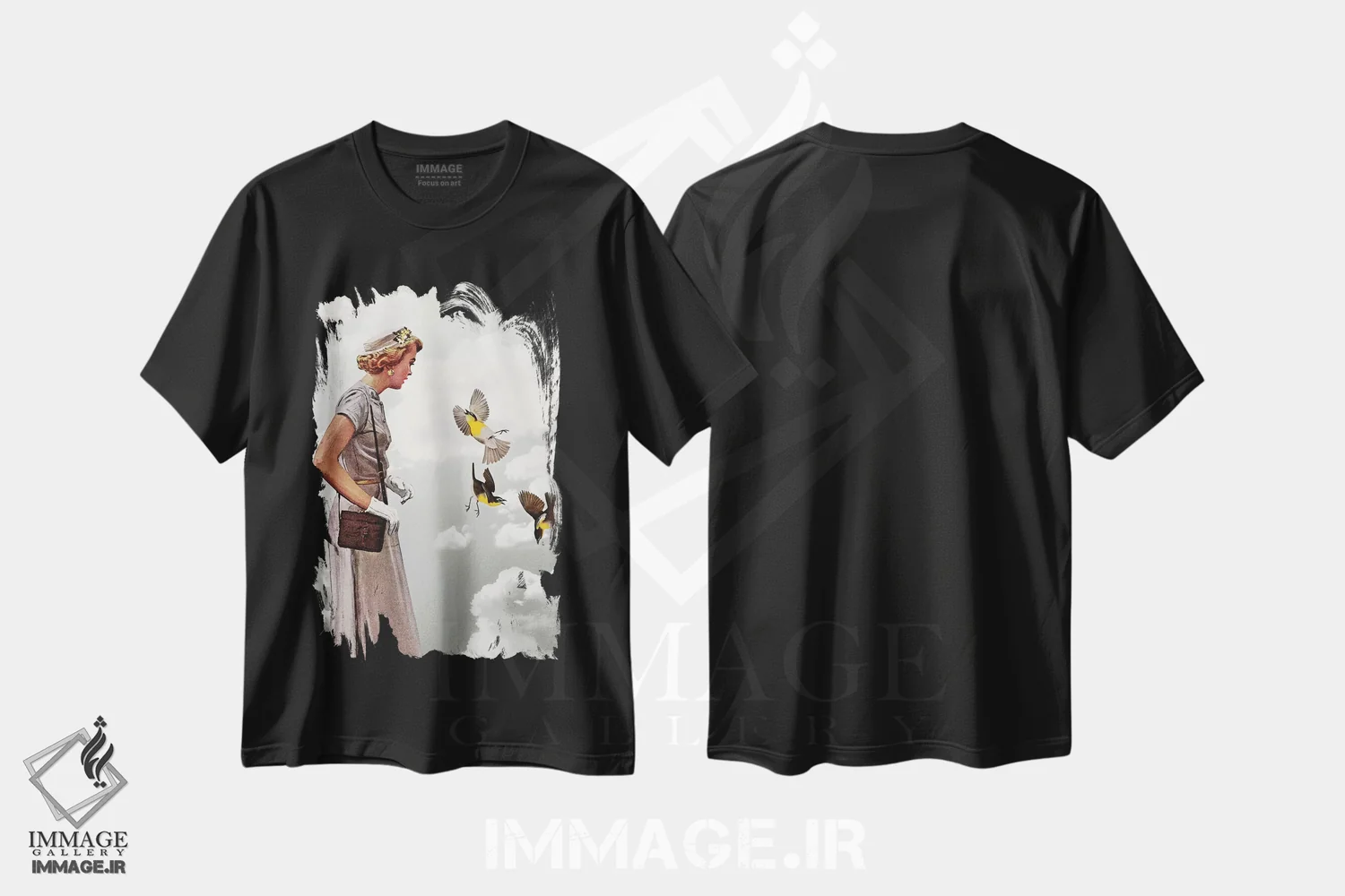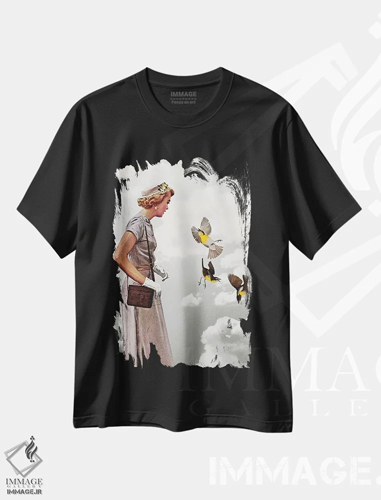 تی شرت هنری «بانوی خاکستری پوش»؛ پرتره زنانه با جزئیات وینتیج