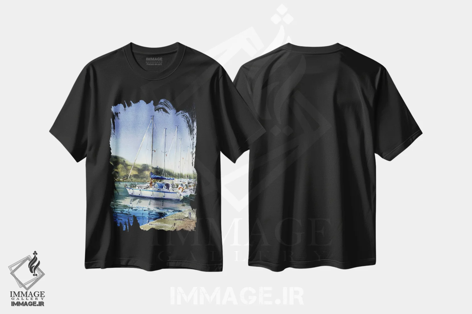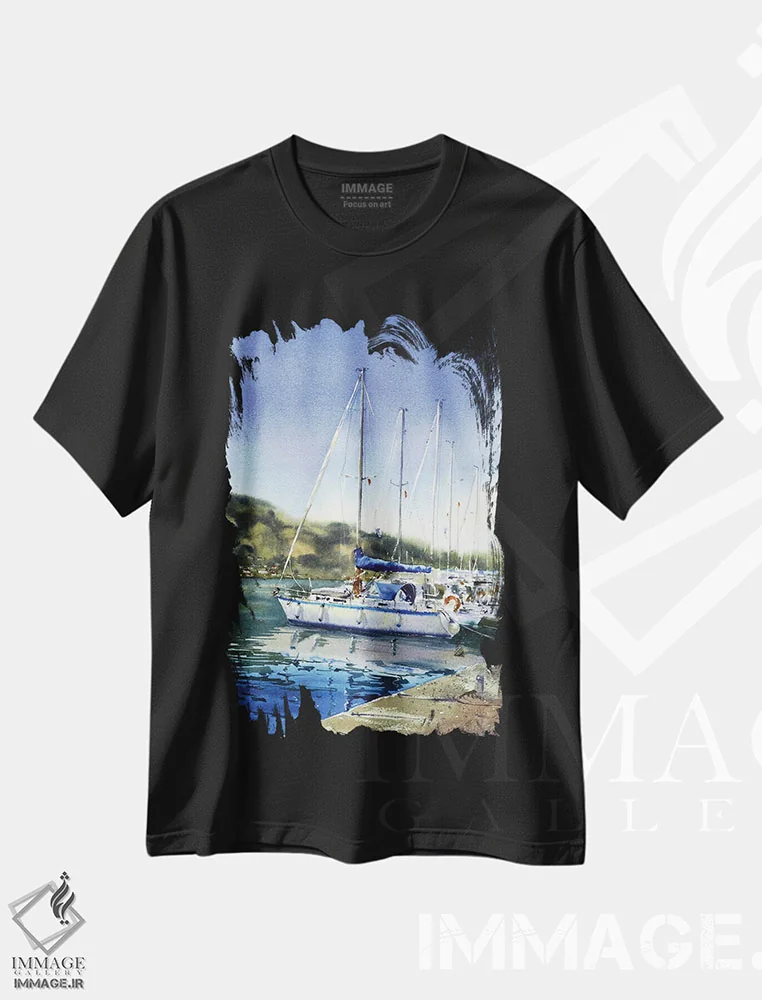 تیشرت طرح دار قایق های پهلوگرفته I اثر هوم لایک آرت