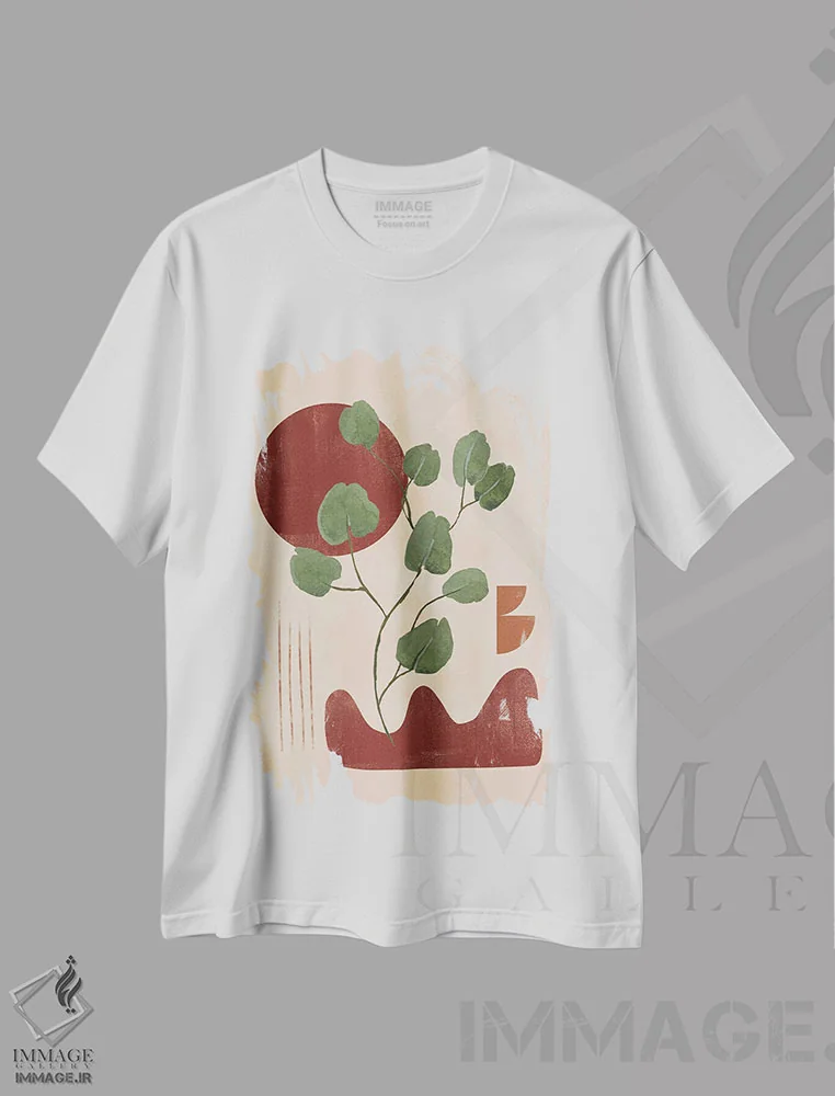 تیشرت سفید طرح دار برگ مسی انتزاعی II اثر هلو مورائس | immage.ir