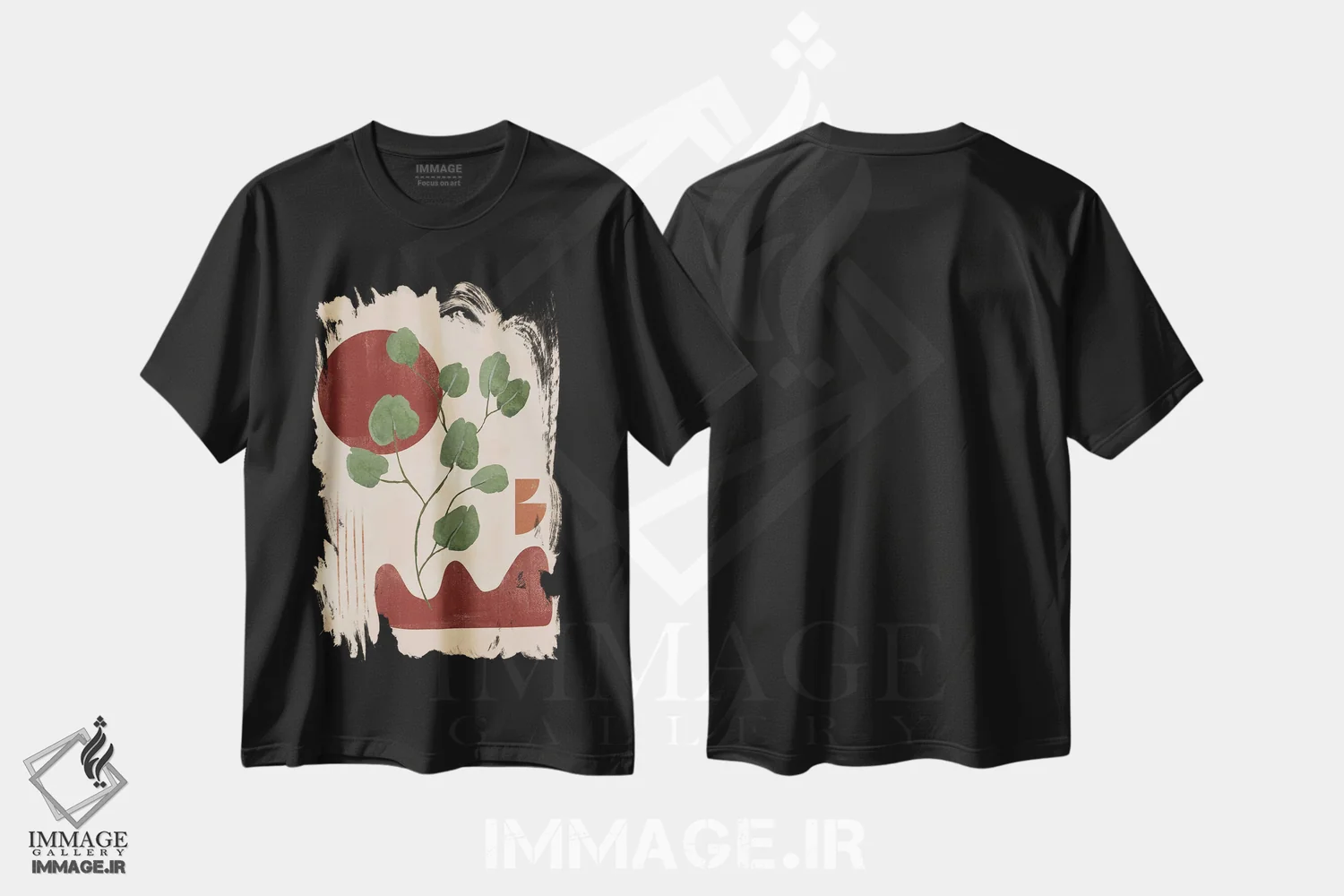 تیشرت مشکی طرح دار برگ مسی انتزاعی II اثر هلو مورائس | فروشگاه ایماژ