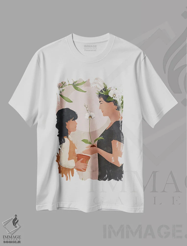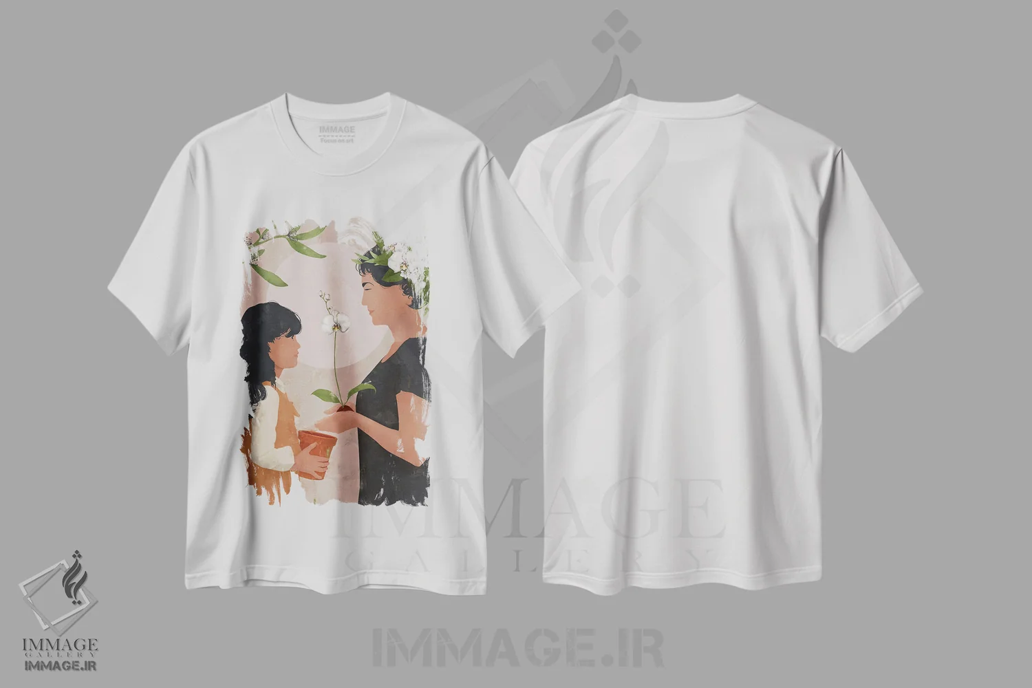 تیشرت سفید طرح دار دختر غروب انتزاعی سه، تزئینی اثر هلو مورائس | immage.ir