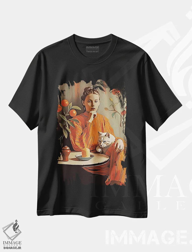 تی شرت پرتره زنانه «او در حال فکر کردن است V» با المان های حیوان دوستانه
