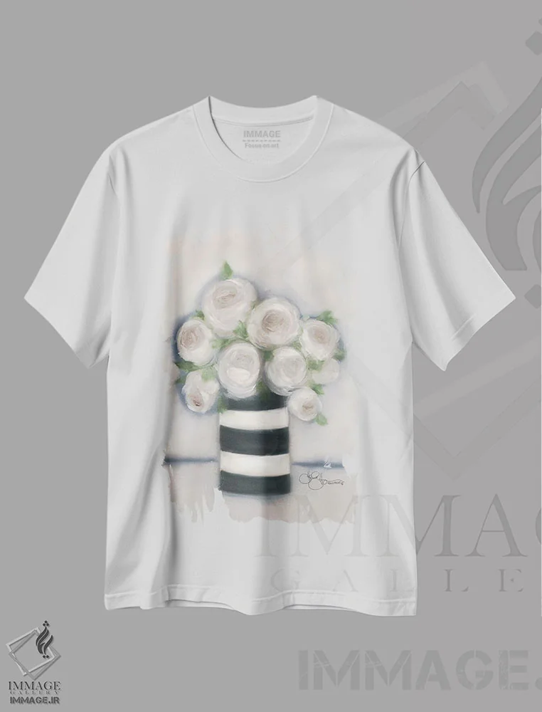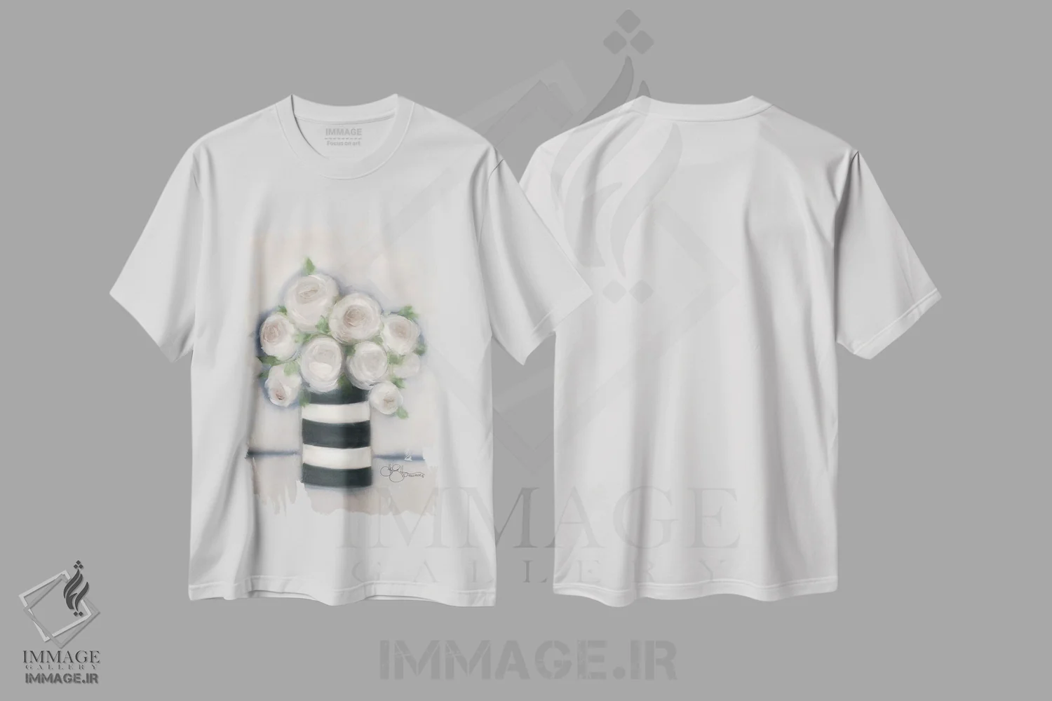 تیشرت سفید طرح دار خانه روستایی در حومه، دکور روستایی اثر هولی هکس آرت | immage.ir