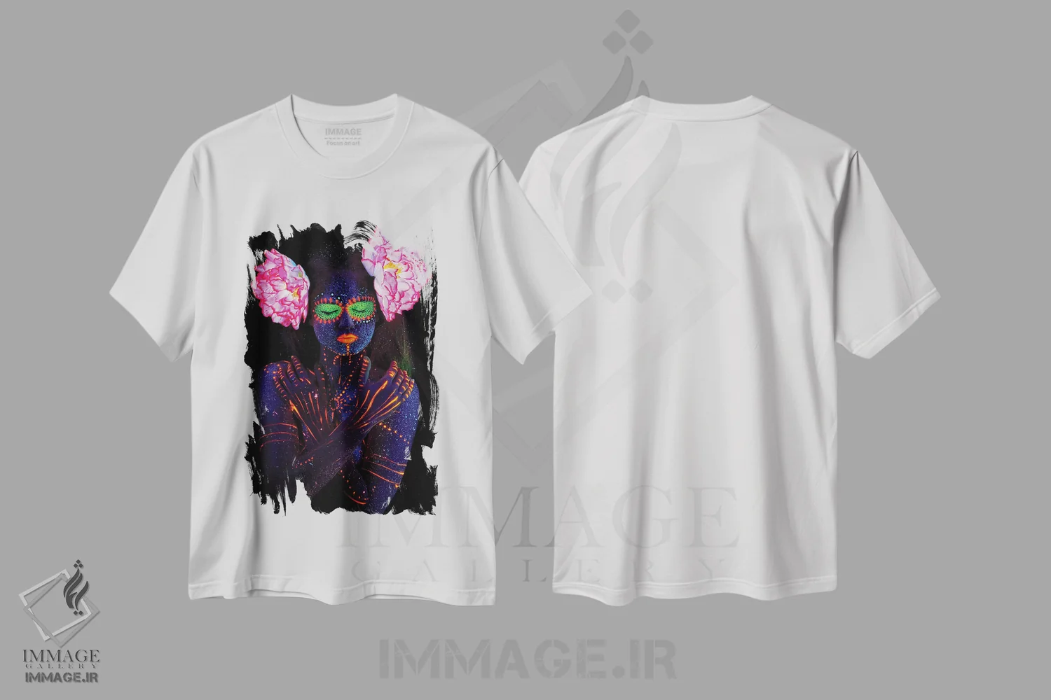 «تنهایی نئونی»؛ تی شرت پرتره زنانه با نورپردازی مدرن