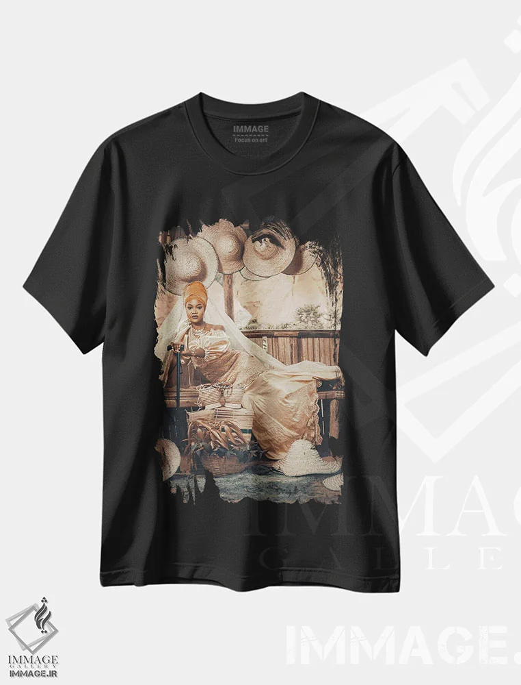 تیشرت مشکی طرح دار ملکه آمنه ۲، هنر آمریکایی آفریقایی تبار اثر هری ادونزه | immage.ir
