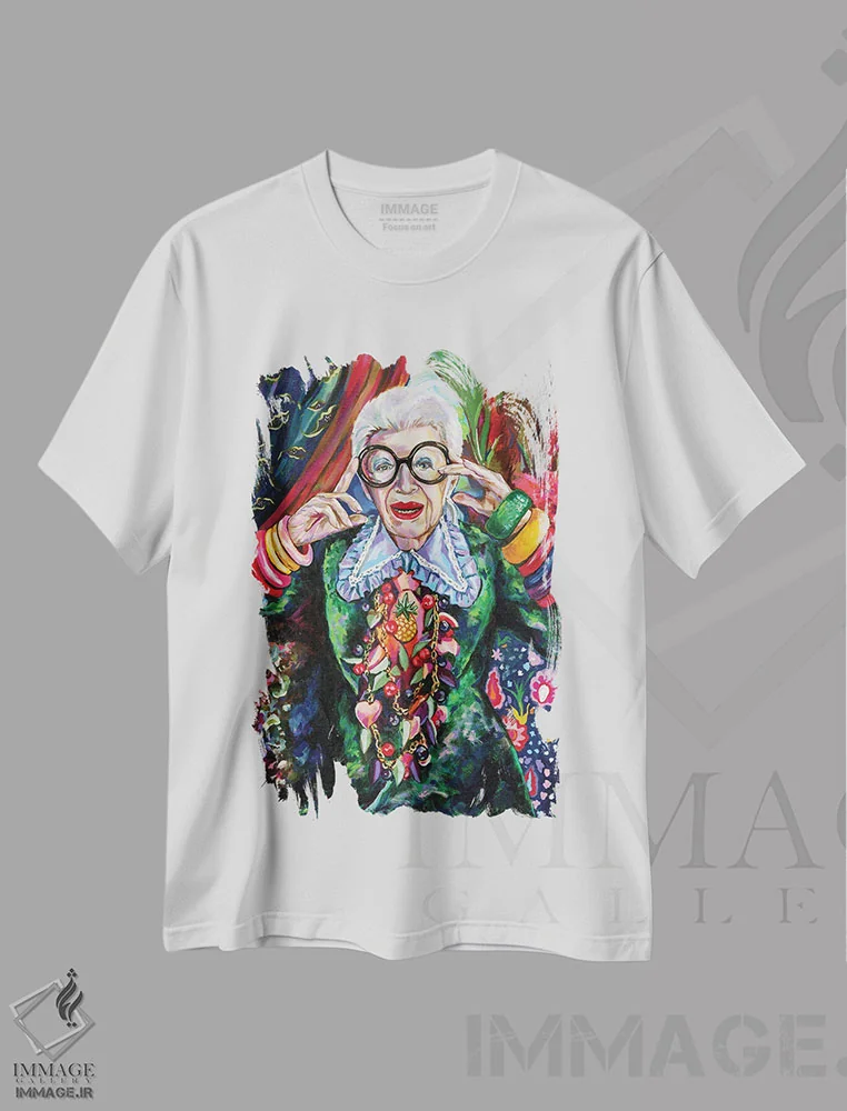 تی شرت پرتره «آیریس اپفل»؛ تلفیق مد زنانه و هنر روغنی