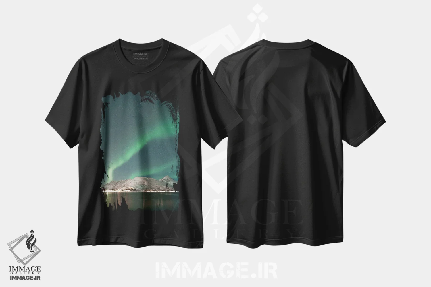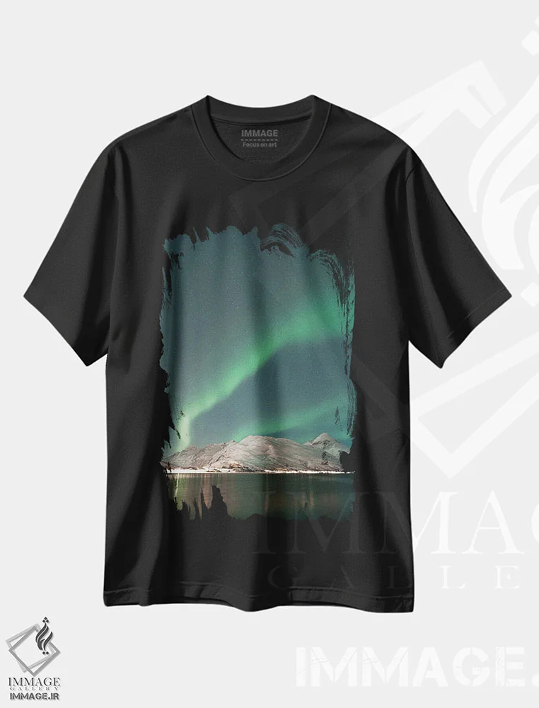 تیشرت مشکی طرح دار شفق قطبی در نروژ، مدیوم اثر هنریکه شنک | immage.ir