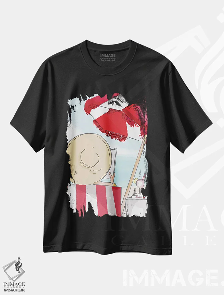 تیشرت مشکی طرح دار روزهای ساحلی بهترین اند، دکور ساحلی اثر هدر استیلافسن | immage.ir