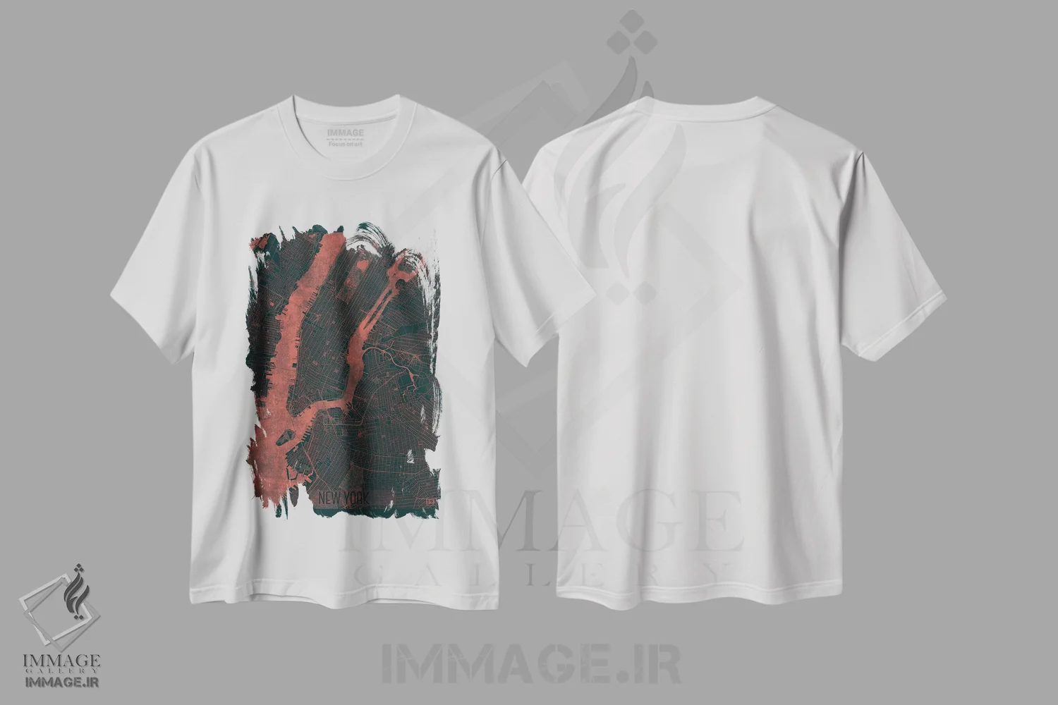 تیشرت سفید طرح دار نقشه شهری مادون قرمز نیویورک، هنر دیجیتال اثر هوبرت روگوسکی | فروشگاه ایماژ