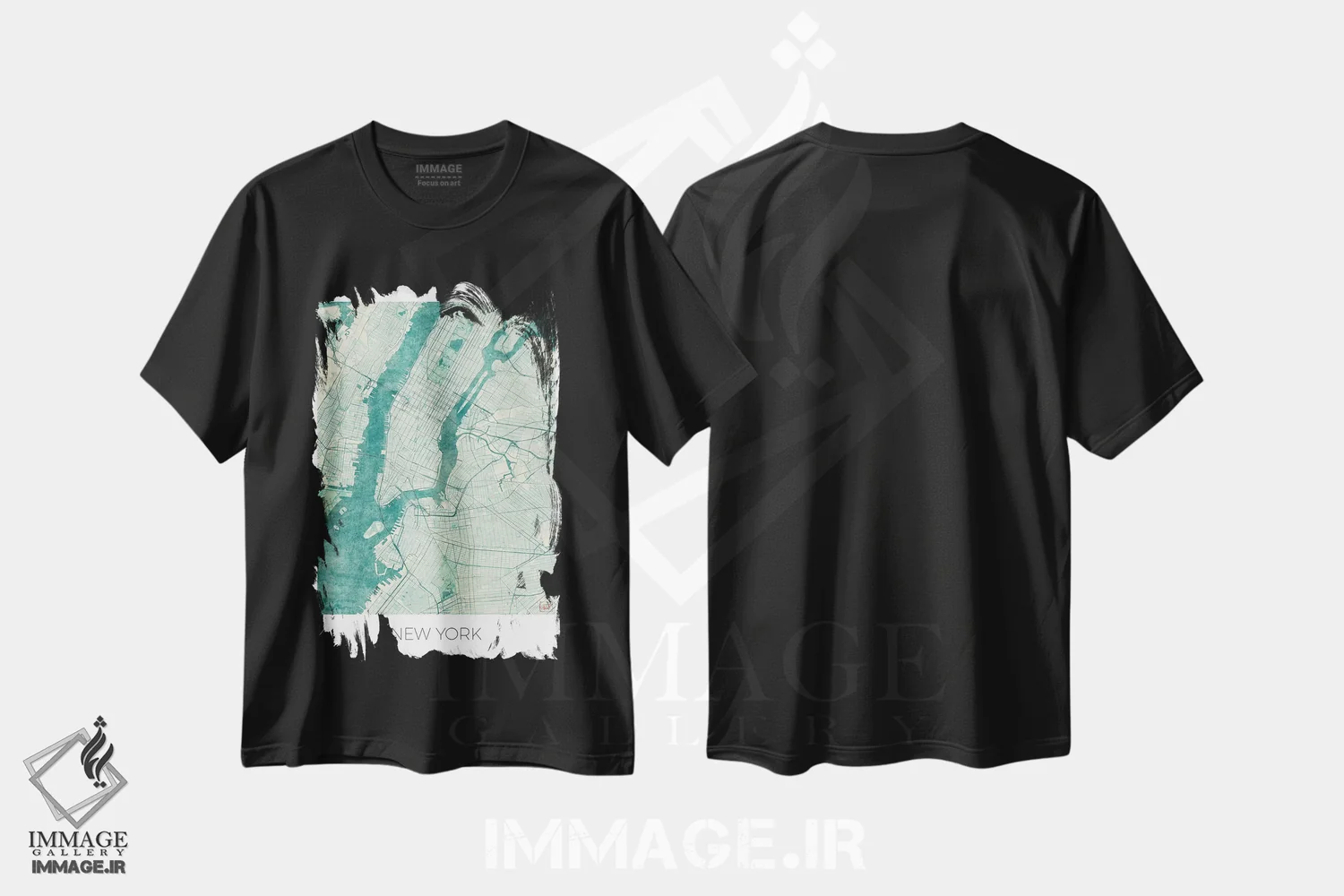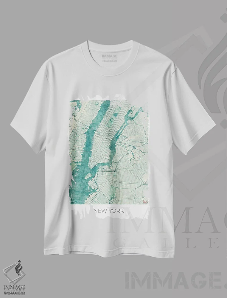 تی شرت هنری «نقشه آبرنگی آبی نیویورک»