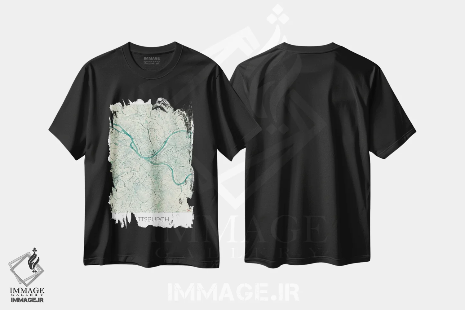 تی شرت «پیتسبورگ وینتیج» با نقشه آبرنگی فیروزه ای