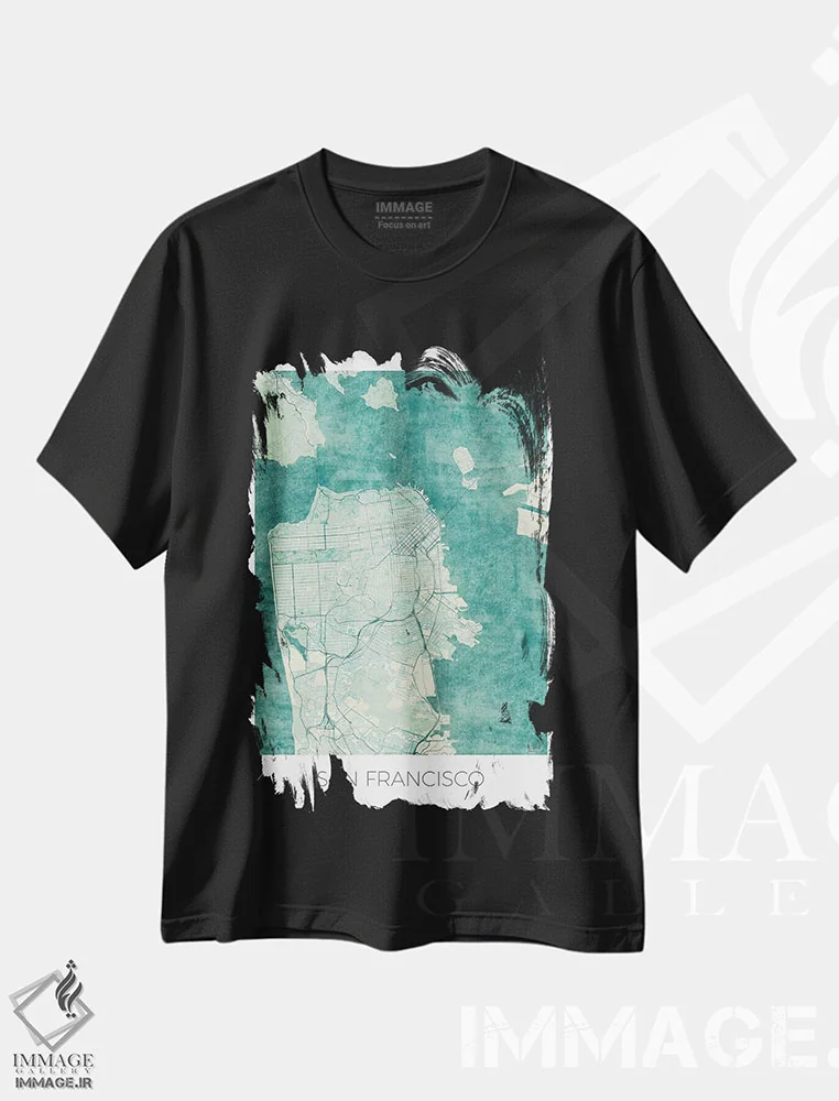 تیشرت طرح دار نقشه طرح شهری قدیمی با آبرنگ آبی سان فرانسیسکو اثر هوبرت روگوسکی