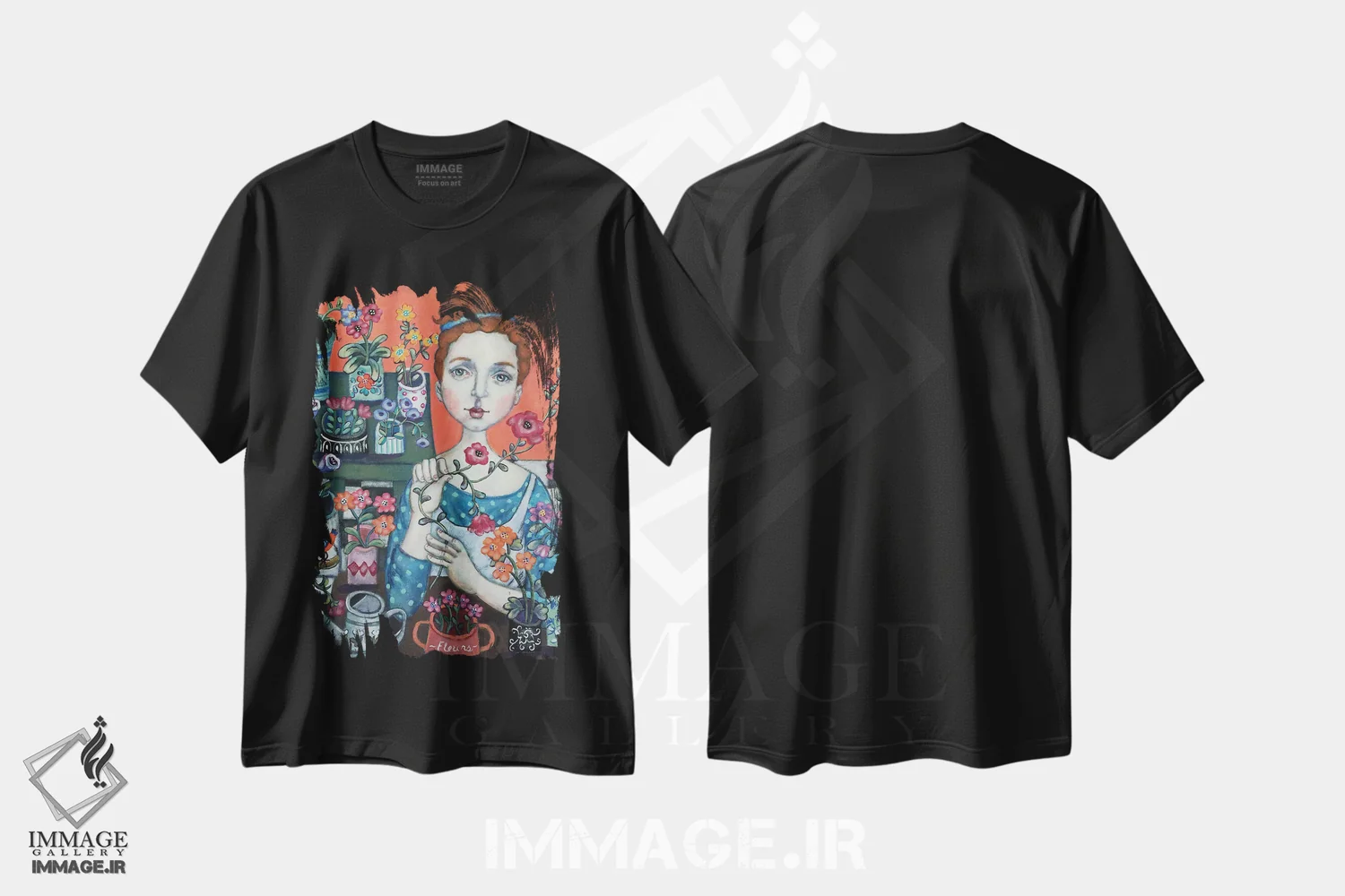 «گل فروش زیبا»؛ تی شرت پرتره زنانه با لطافت هنری