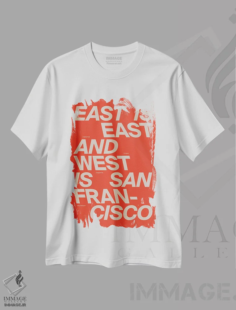 تیشرت سفید طرح دار شرق همان شرق است، تزئینی اثر هری ریچاردز | immage.ir