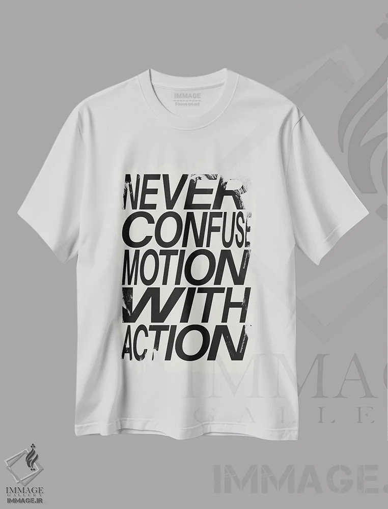 تیشرت سفید طرح دار هرگز حرکت را با عمل اشتباه نگیر، تزئینی اثر هری ریچاردز | immage.ir