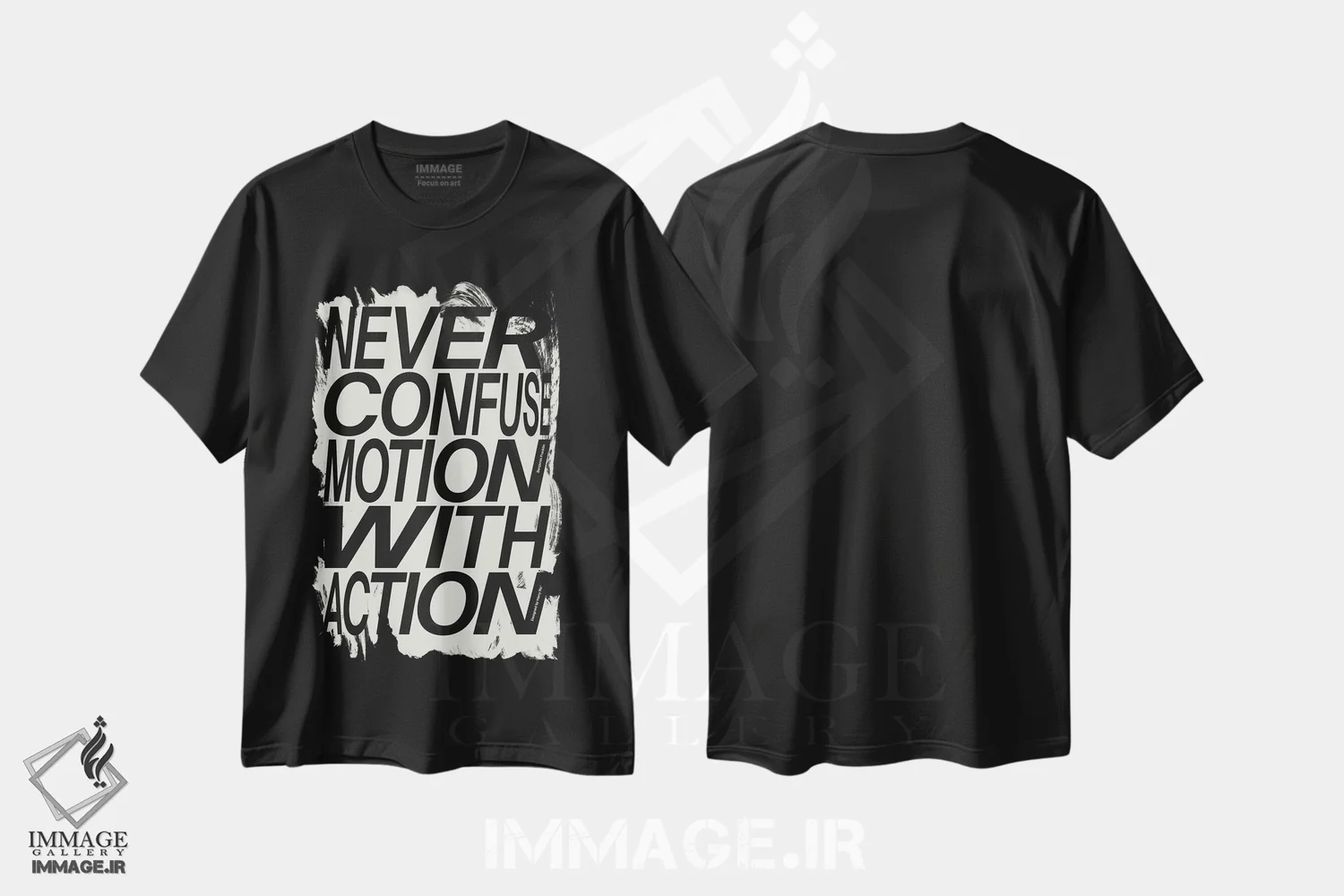 تیشرت مشکی طرح دار هرگز حرکت را با عمل اشتباه نگیر، تزئینی اثر هری ریچاردز | فروشگاه ایماژ