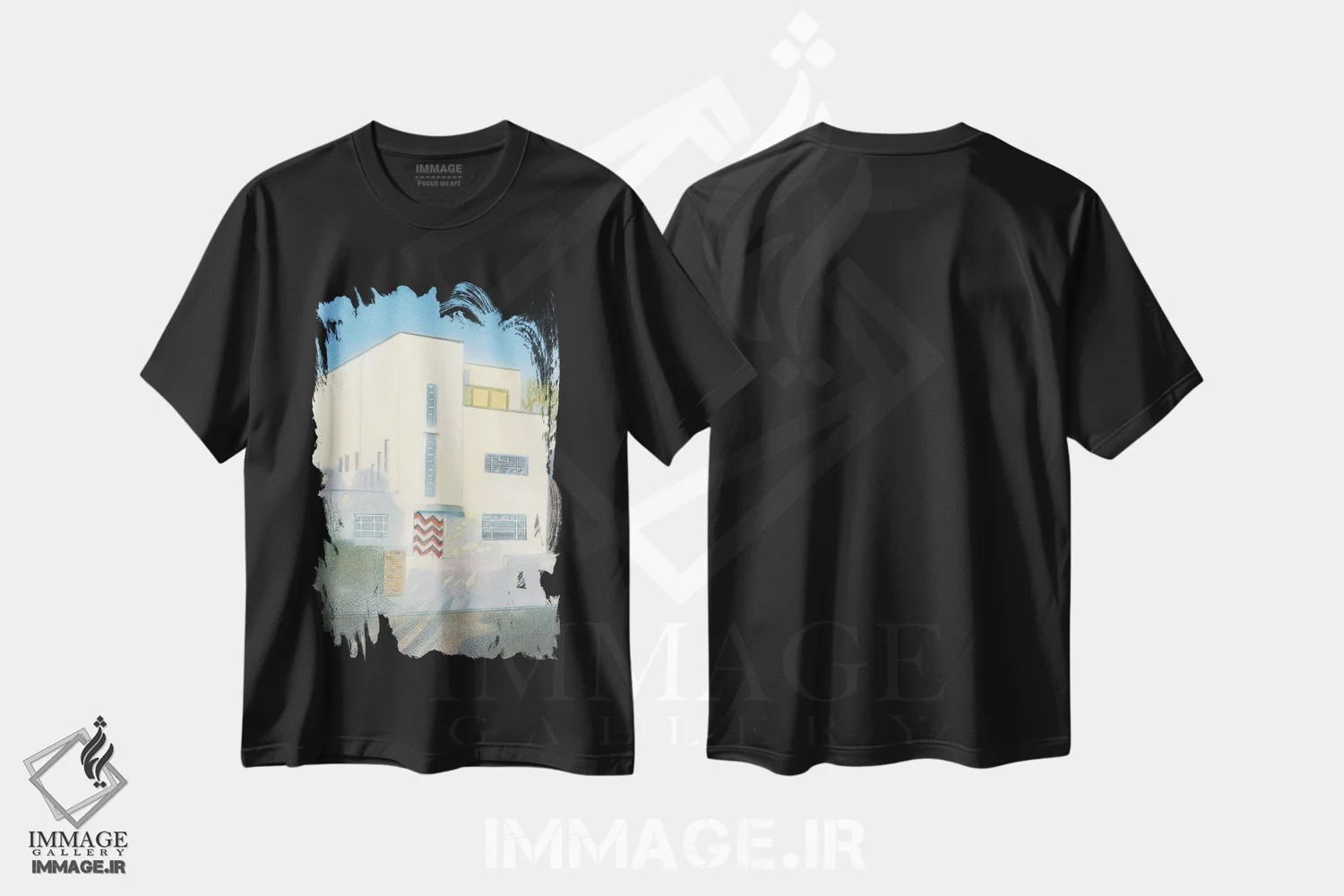 تیشرت مشکی طرح دار خانه به سبک مدرن، آوریل ۲۰۲۳، هنر فاخر معاصر اثر ایان بک | فروشگاه ایماژ