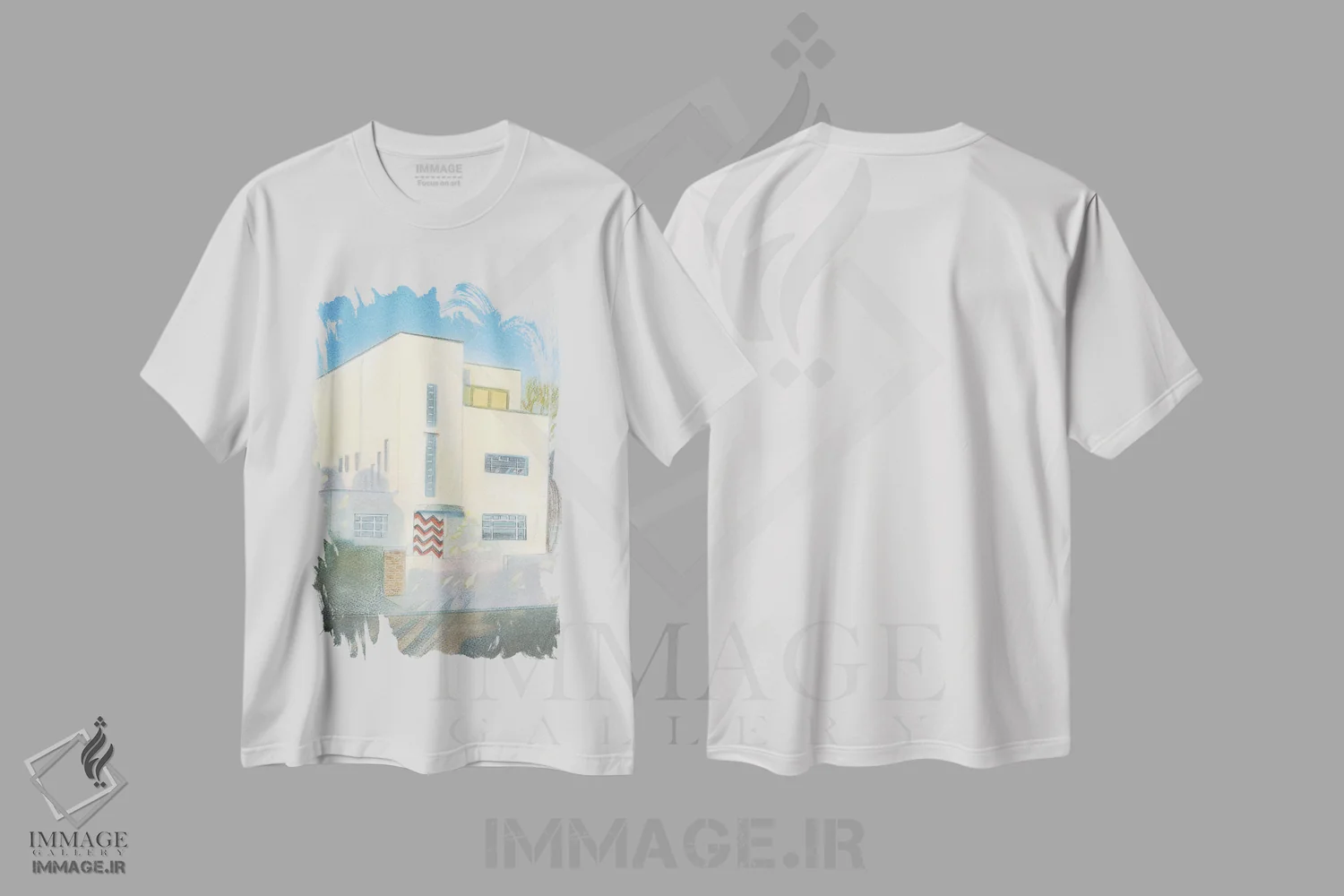 تیشرت سفید طرح دار خانه به سبک مدرن، آوریل ۲۰۲۳، هنر فاخر معاصر اثر ایان بک | immage.ir