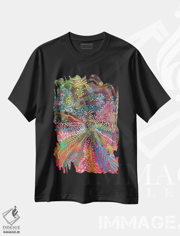 تیشرت مشکی طرح دار گلبرگ ها ۳، آبستره اثر نوئمی ایبارز | immage.ir