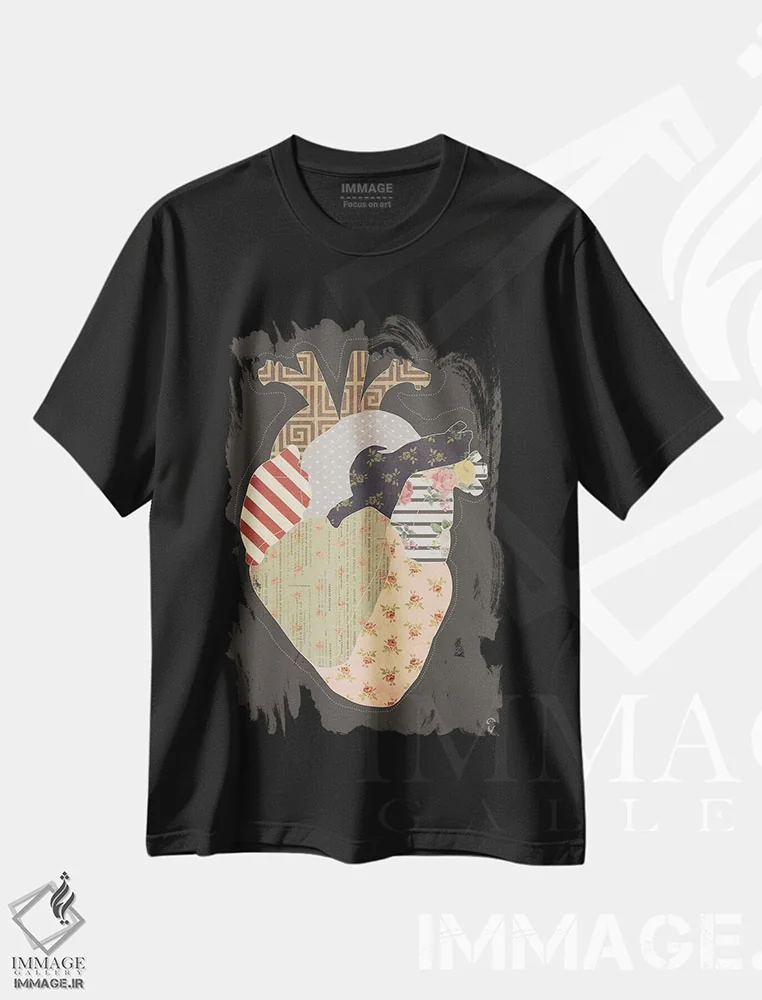 تیشرت مشکی طرح دار قلب روی سیاه، دکوراسیون جایگزین اثر ایم نات اکروک | immage.ir