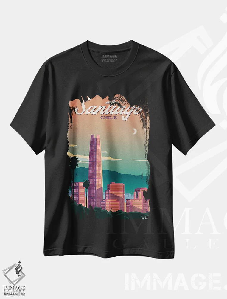 تی شرت هنری «پوستر سانتیاگو»؛ خط افق آمریکای جنوبی روی تن