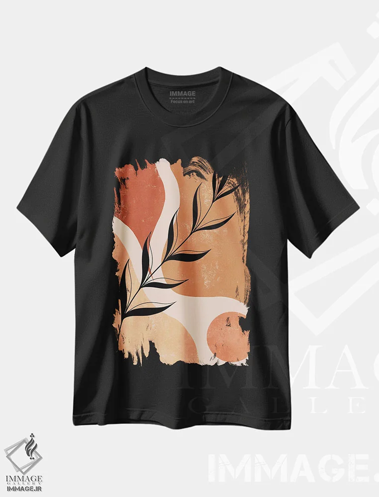 تی شرت مینیمال «برگ سیاه»؛ ظرافت انتزاعی برای استایل شهری