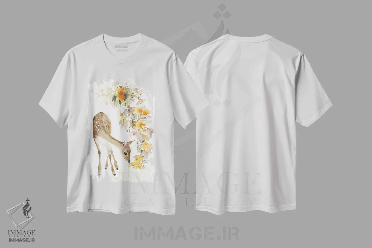 تی شرت هنری «آهو با شاخه»؛ لطافت پاییزی برای استایل های روزمره