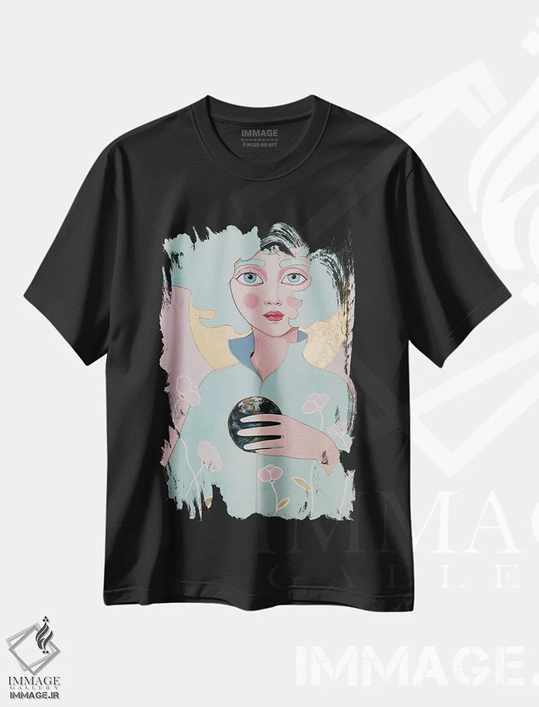 تیشرت مشکی طرح دار زمین، مدیوم اثر ایرینا پانِدوا | immage.ir