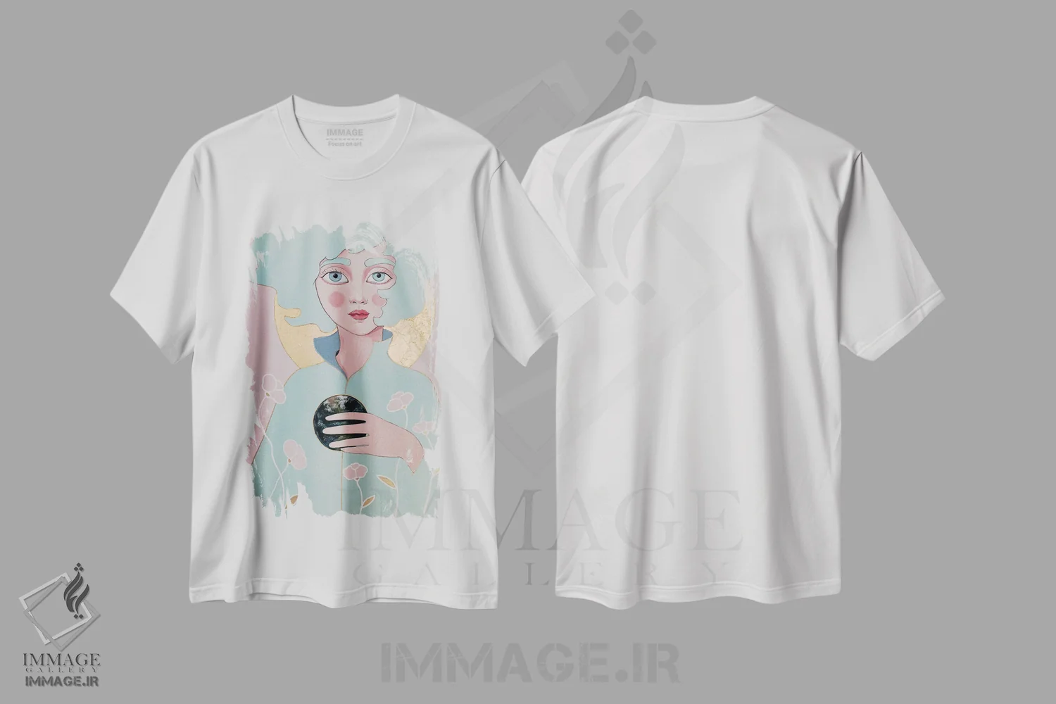 تیشرت سفید طرح دار زمین، مدیوم اثر ایرینا پانِدوا | فروشگاه ایماژ