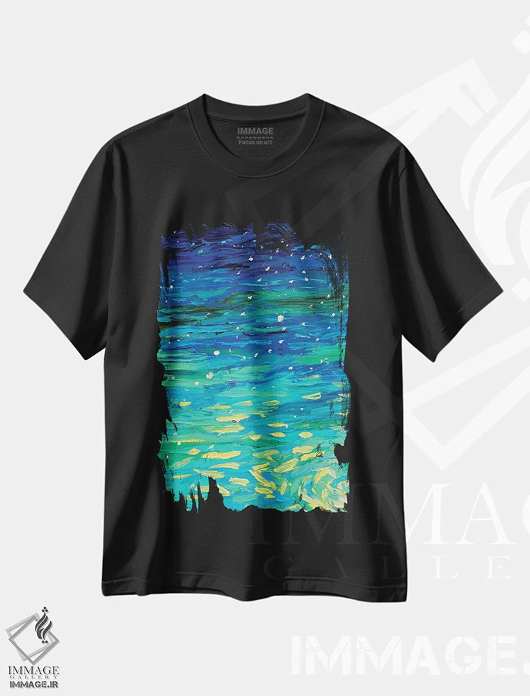 تی شرت آبستره فیروزه ای–سبز؛ انتخابی برای استایل طبیعت دوست