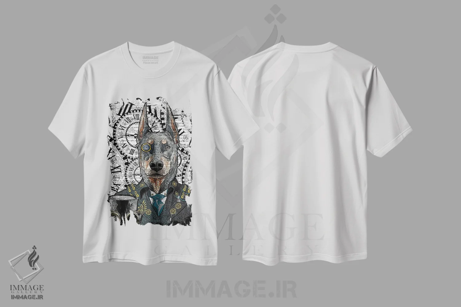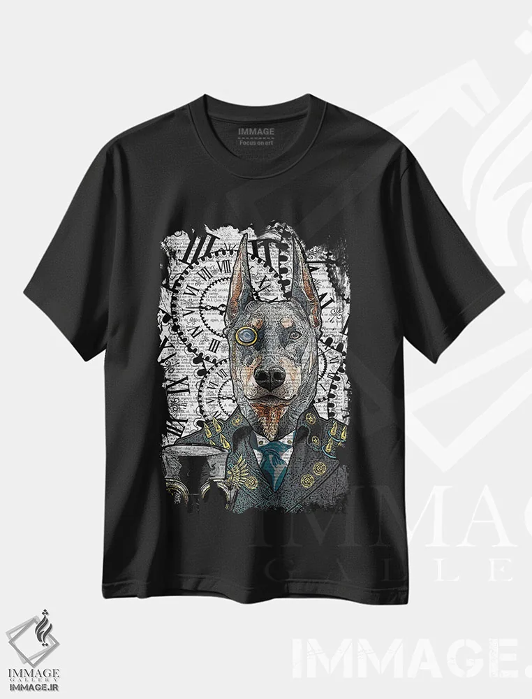تیشرت طرح دار دوبرمن استیم پانک اثر این د فریم شاپ