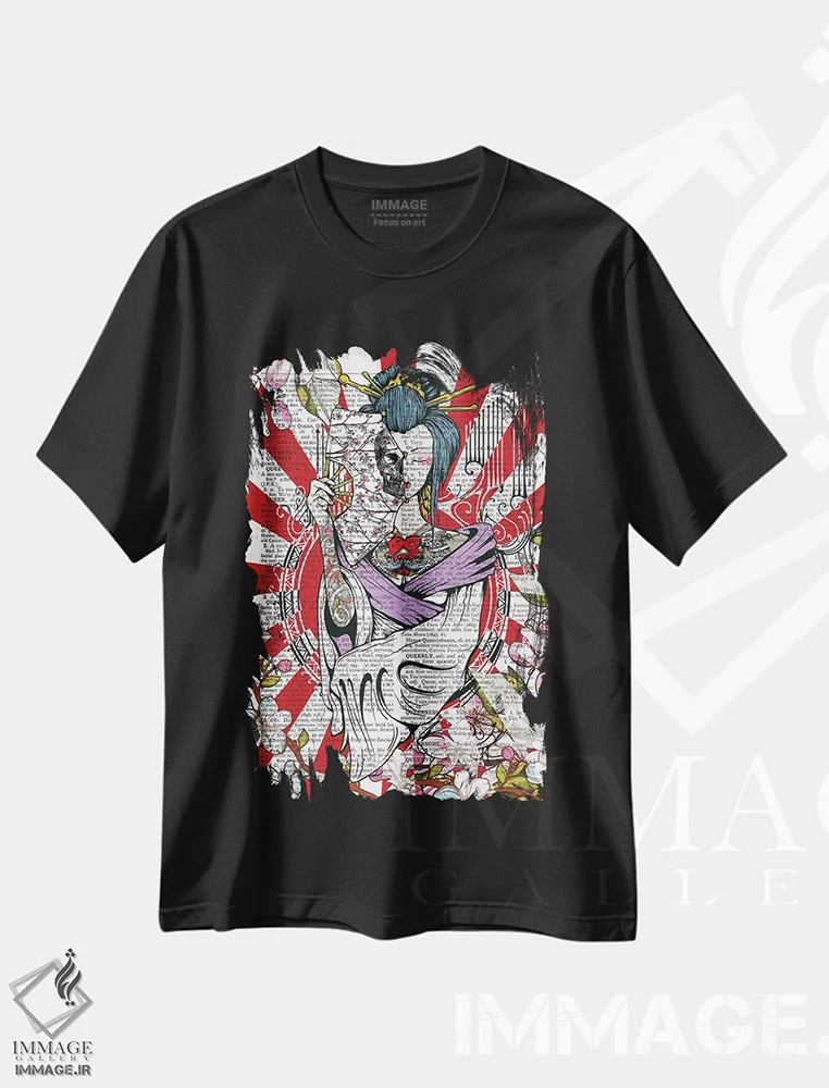 تیشرت طرح دار گیشای خالکوبی شده اثر این د فریم شاپ