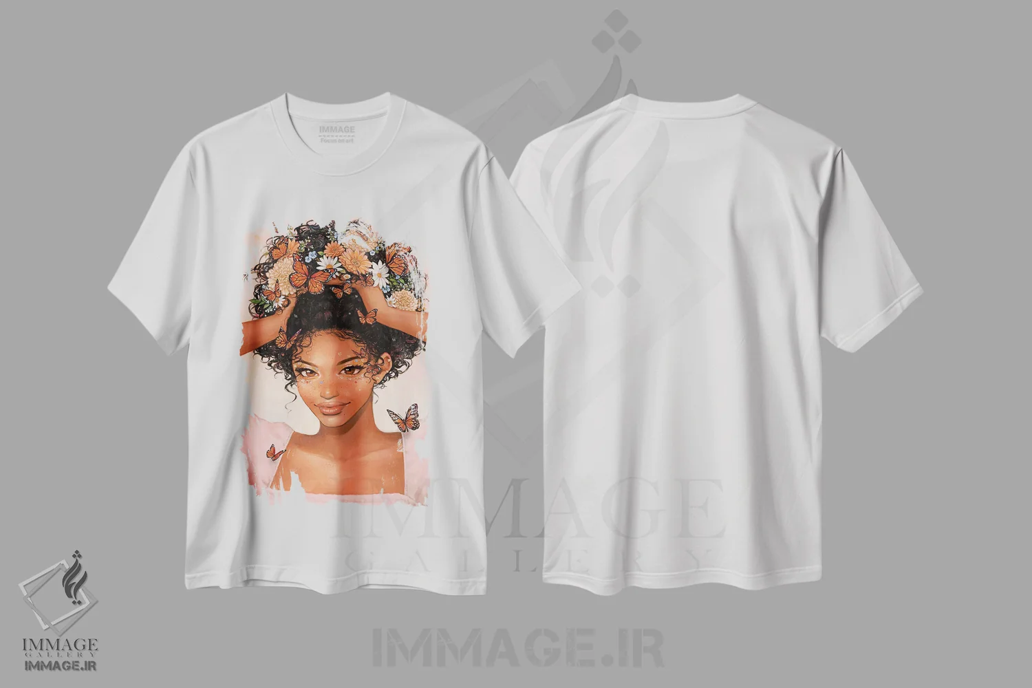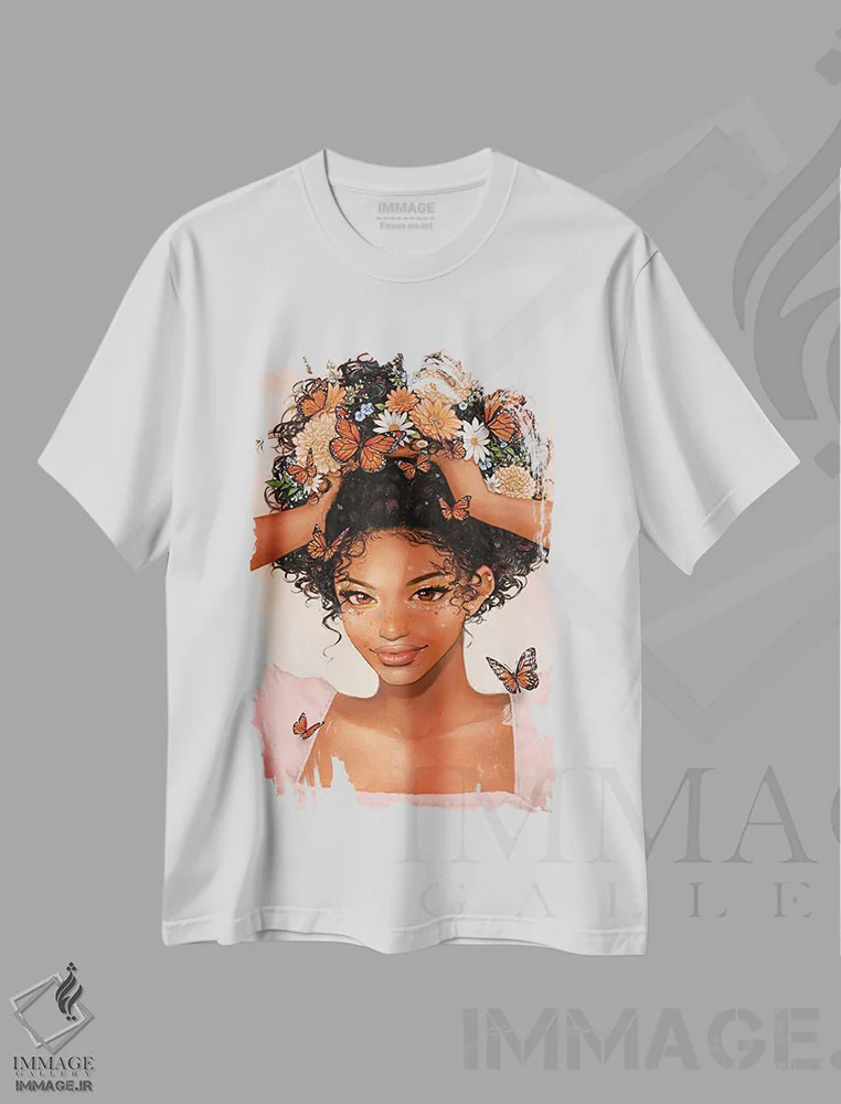 تی شرت «دسته گل»؛ پرتره زنانه با پروانه های سلطنتی