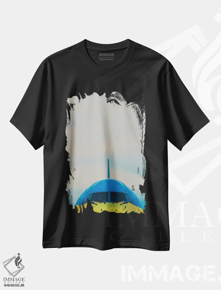 تیشرت طرح دار کابین خلبان هواپیمای آبی و زرد اثر ایوجنیا بیدیوک