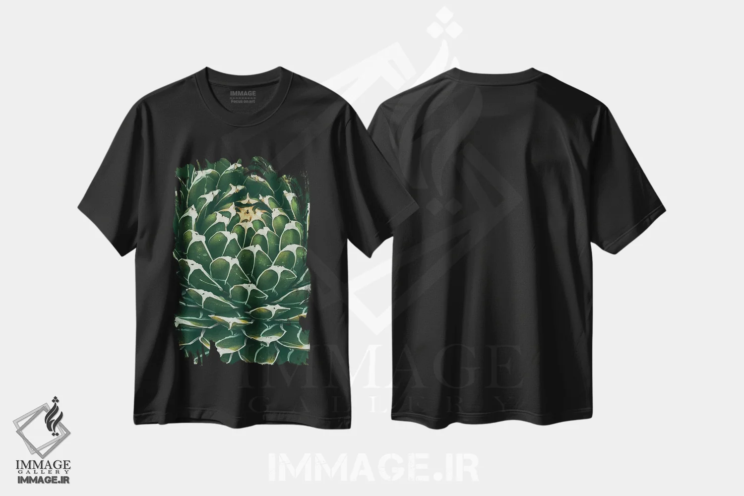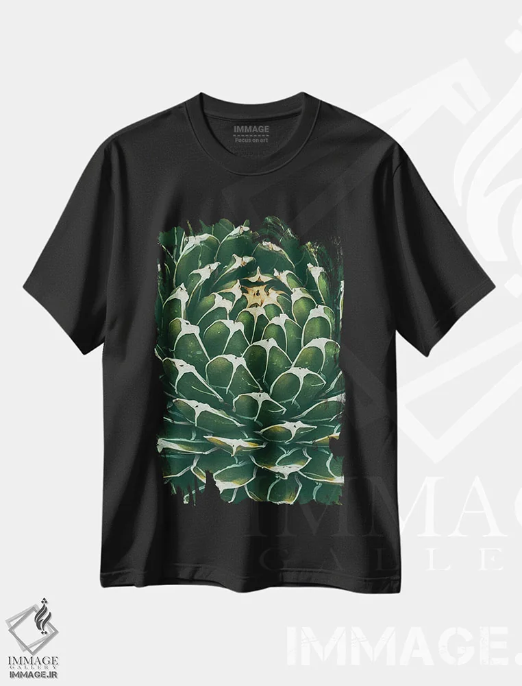 تیشرت مشکی طرح دار پس زمینه عمودی آگاو، هنر دیجیتال اثر ایوجنیا بیدیوک | immage.ir