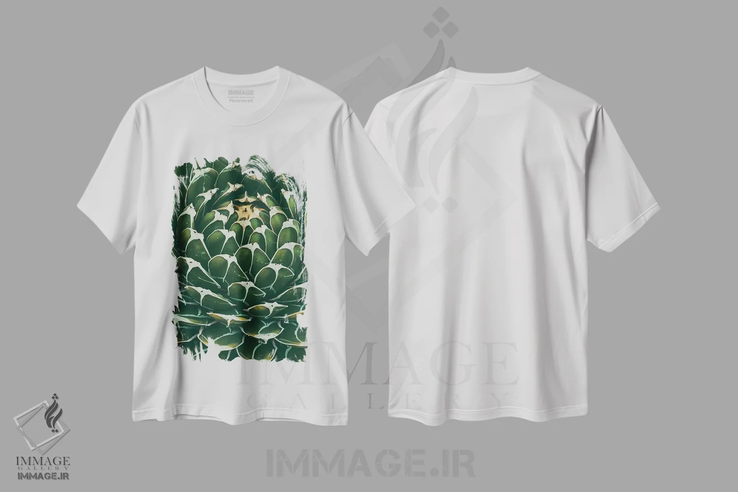 تیشرت سفید طرح دار پس زمینه عمودی آگاو، هنر دیجیتال اثر ایوجنیا بیدیوک | فروشگاه ایماژ