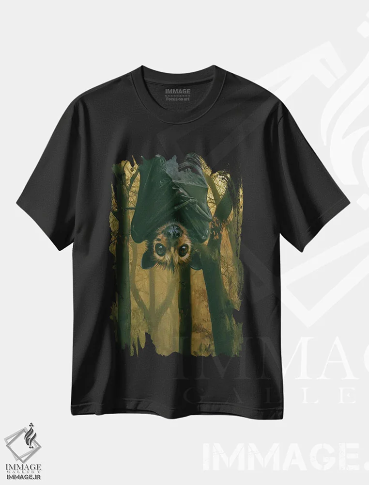 تیشرت مشکی طرح دار خفاشی در جنگل تاریک، دکوراسیون جایگزین اثر ایوجنیا بیدیوک | immage.ir