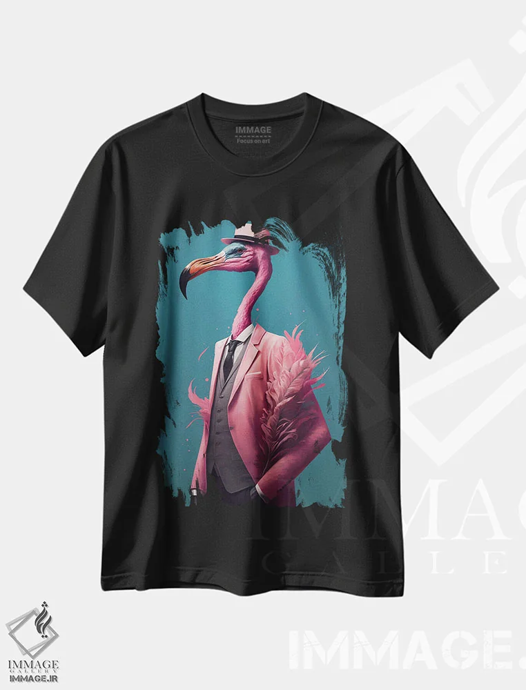تی شرت پرتره «فلامینگو صورتی با کت و کلاه»