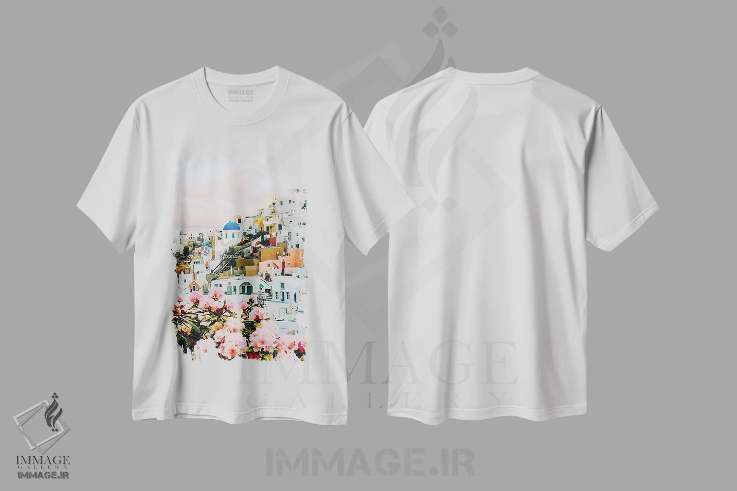 تیشرت طرح دار آزالیای شکوفا در شهر یونان اثر ایوجنیا بیدیوک