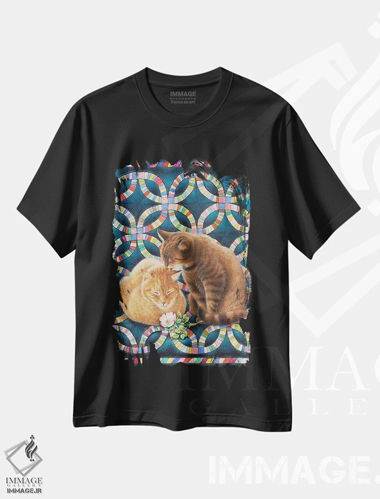 تیشرت مشکی طرح دار روز ولنتاین با اسپایرو و بلاسوم، تزئینی اثر آیوری کتس | immage.ir