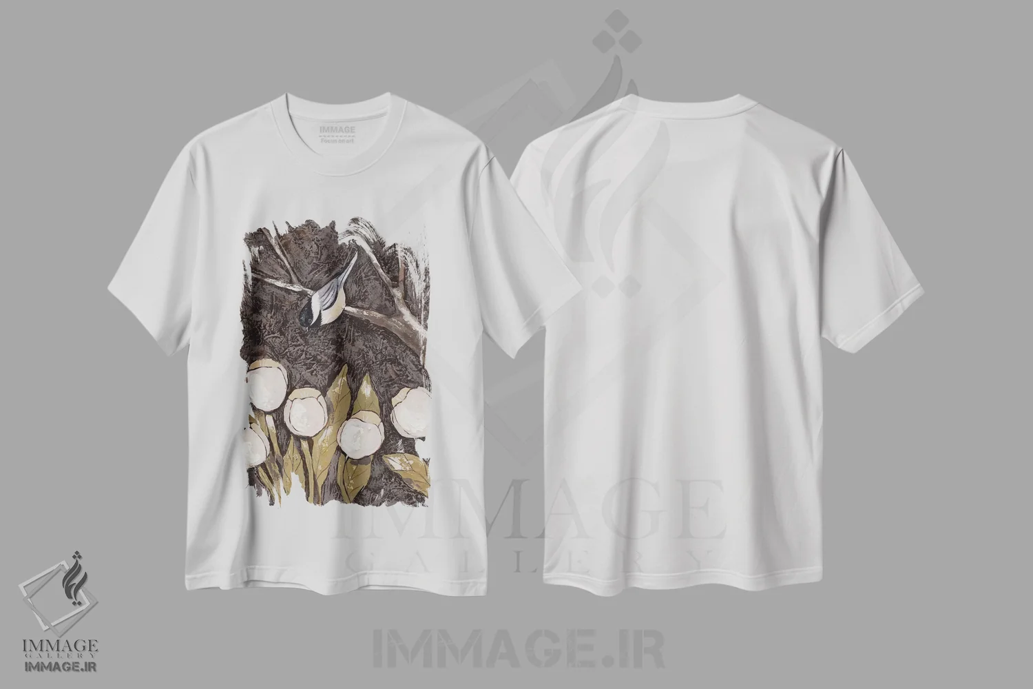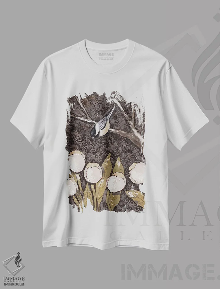 تیشرت سفید طرح دار چیکادی و لاله ها II، دکور روستایی اثر جید رینولدز | immage.ir