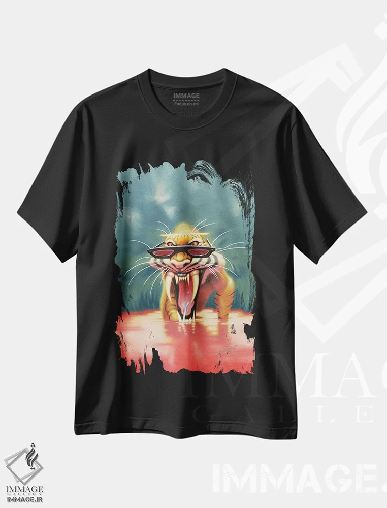 تیشرت مشکی طرح دار ببر تشنه اثر جیمز بنت | immage.ir