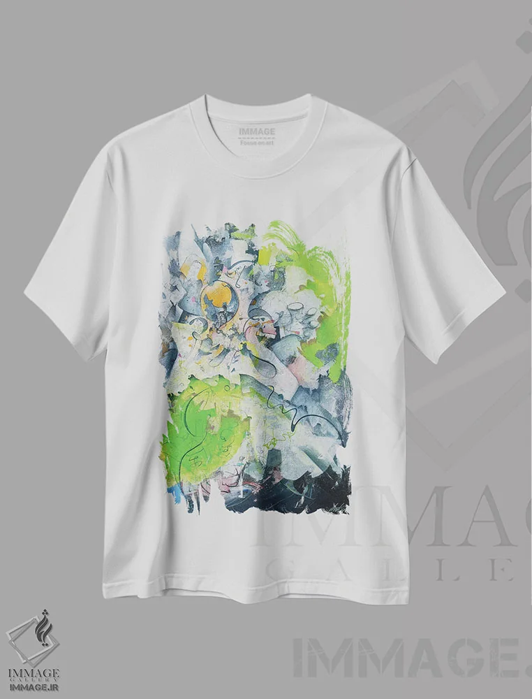 تی شرت «آغاز»؛ ترکیب انتزاع و رنگ های فیروزه ای