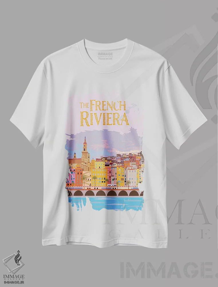 پوستر دیجیتال «فرنچ ریویرا» روی تی شرت؛ جذابیت ساحل فرانسه در استایل شهری