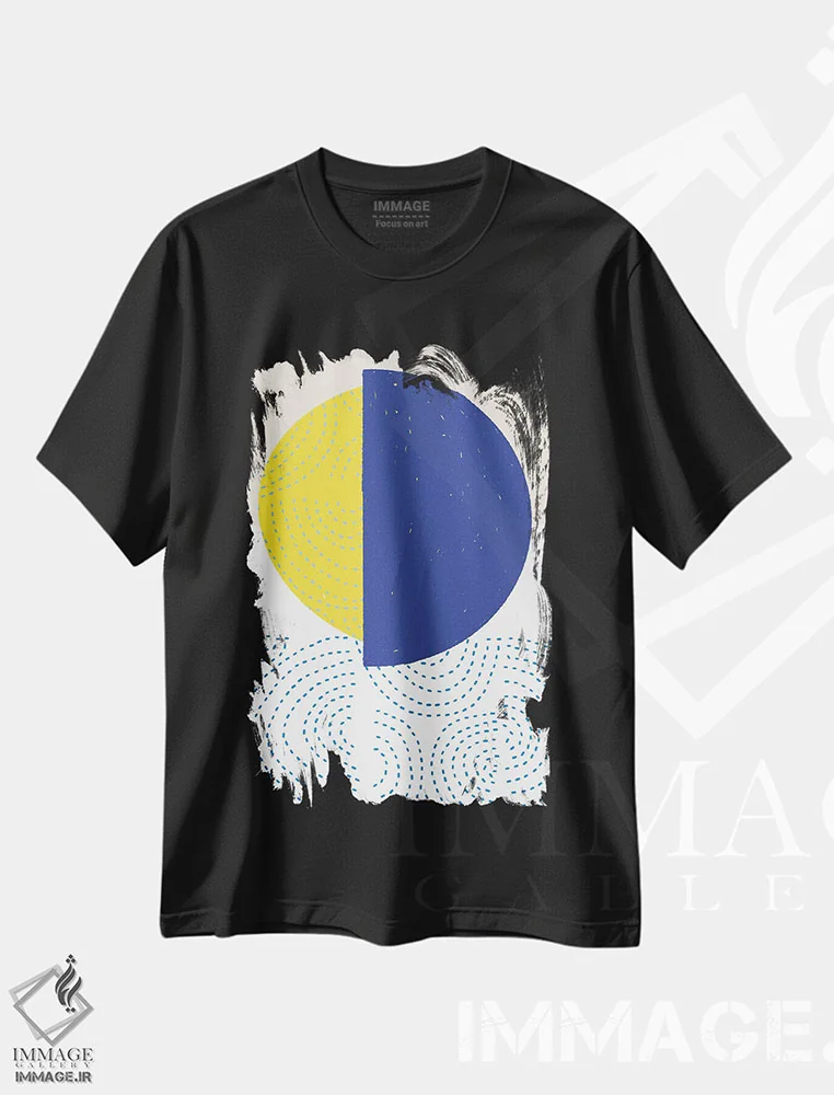 تی شرت مینیمالیستی «دایره های مدرن آبی و زرد I» برای استایل های شهری