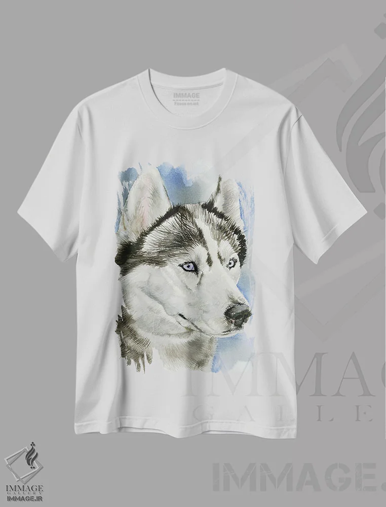 تی شرت طرح «آبی یخی»؛ هاسکی سیبری و جلوه ای خیره کننده در مد زمستانی