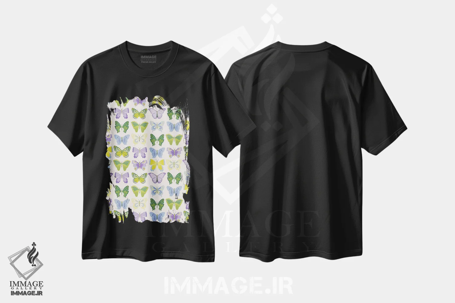 تی شرت «گیاه شناس I»؛ نقش پروانه ها بر زمینه ای تزئینی