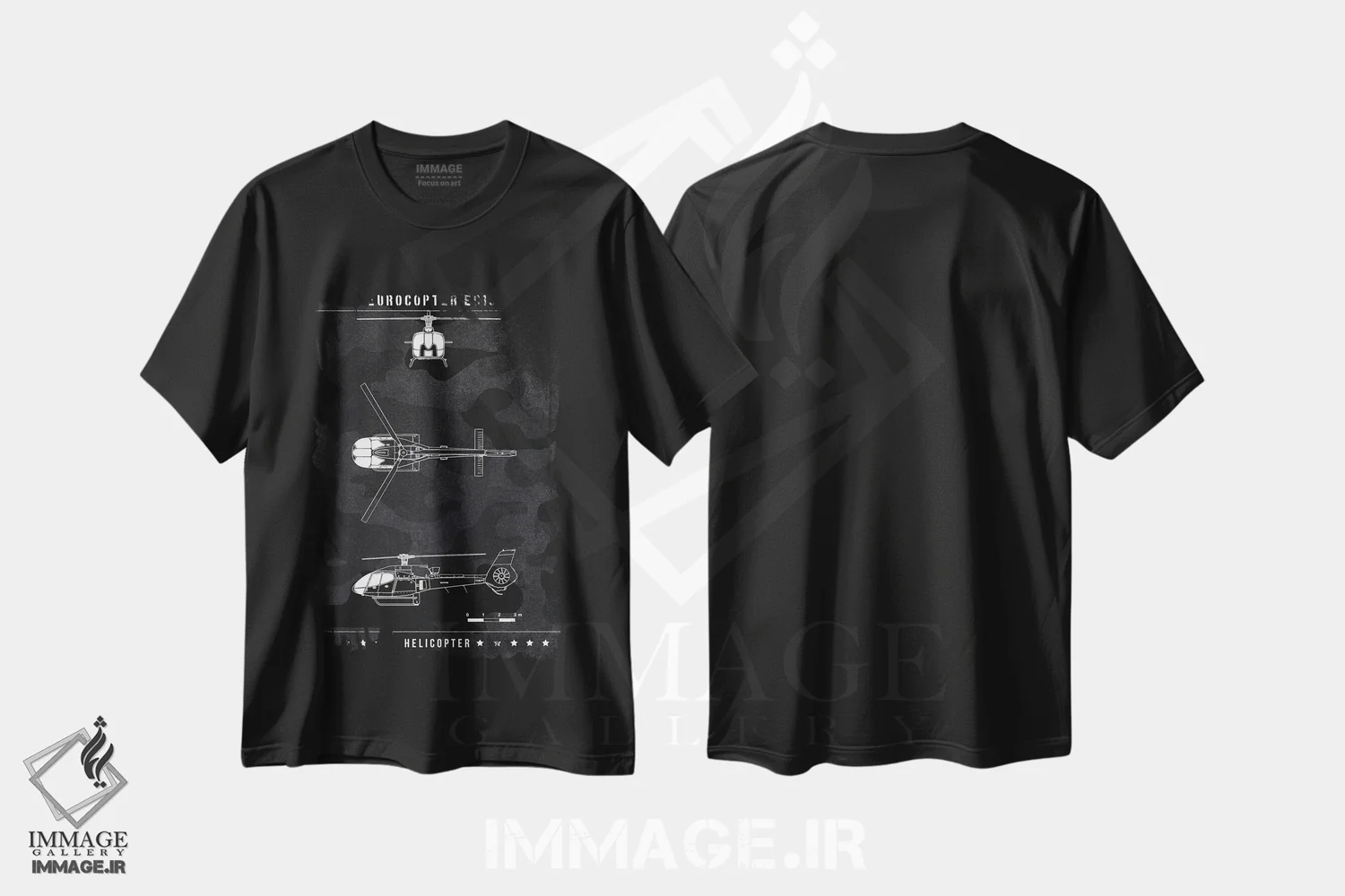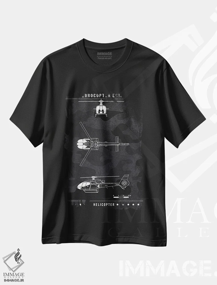 تیشرت مشکی طرح دار یوروکوپتر EC130، هنر تزئینی سیاه و سفید اثر جوزف فرناندو | immage.ir